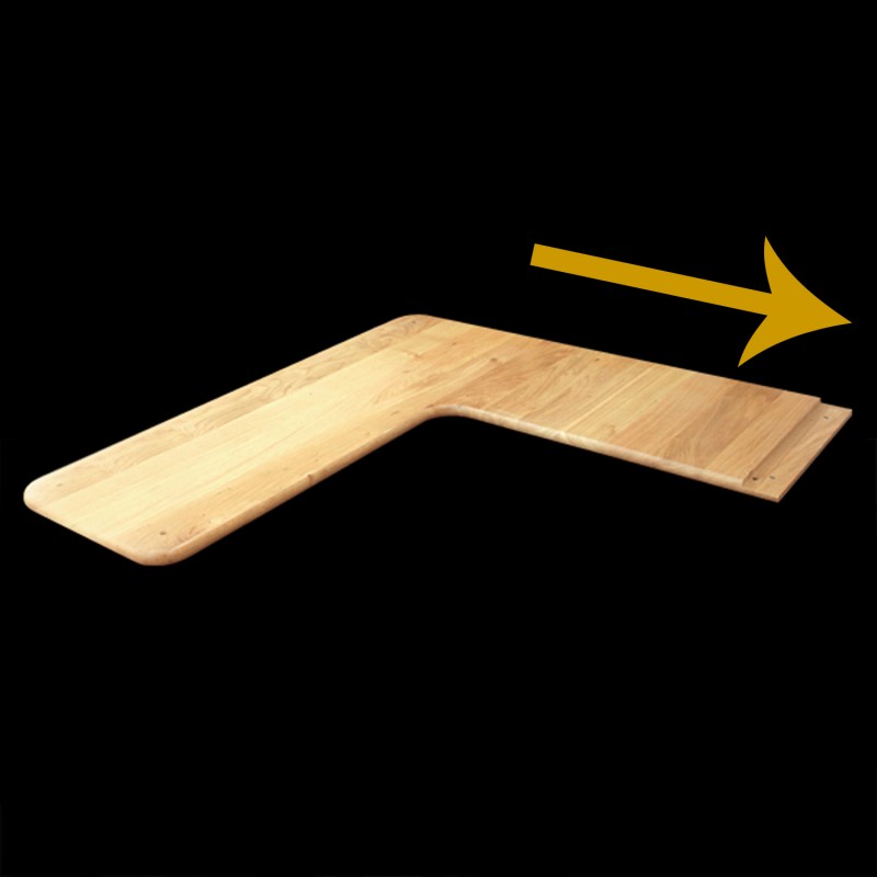 Tablette d’angle pour étagères et bibliothèques, destinée à être assemblée avec une autre tablette alignée.